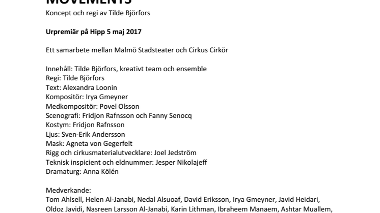 Mer information om uppsättningen och information om alla medverkande hittar du i bifogat dokument. Movements har urpremiär på Hipp 5 maj 2017.