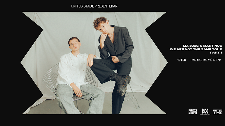 Nu åker Marcus & Martinus ut på en stor turné i Norden, med tre konserter i Sverige. We Are Not The Same Tour besöker Malmö i februari. Biljetterna till den efterlängtade konserten släpps 27 oktober kl 10:00.