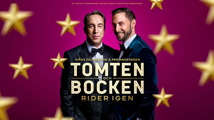 Måns Zelmerlöw och Per Andersson åker på turné med julshowen Tomten och Bocken – Rider igen. Det blir 12 arenor över hela Sverige och den 1 december kommer showen till Malmö Arena!