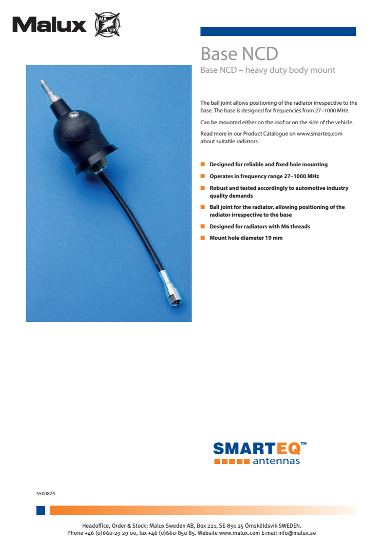 Nya NCD fästet! -Det nya NCD-fästet finns ute hos våra installatörer och återförsäljare i hela Norden vid det här laget. Många av våra kunder är vana att arbeta med 128-fästet som är en riktig klassiker. -Med NCD-fästet har våra kunder ett komplement för de mest krävande installationerna, säger Tim Svan (antennförsäljare hos Malux).