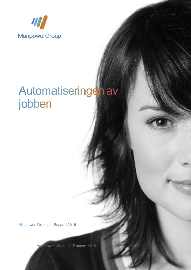 Många studier har under det senaste året visat att den snabba tekniska utvecklingen gör att ungefär hälften av alla jobb kommer kunna automatiseras inom 10-15 år. Manpower Work Life har i flera år undersökt svenskarnas syn på arbete och karriär, och i den här rapporten utforskas attityder kring automatisering.