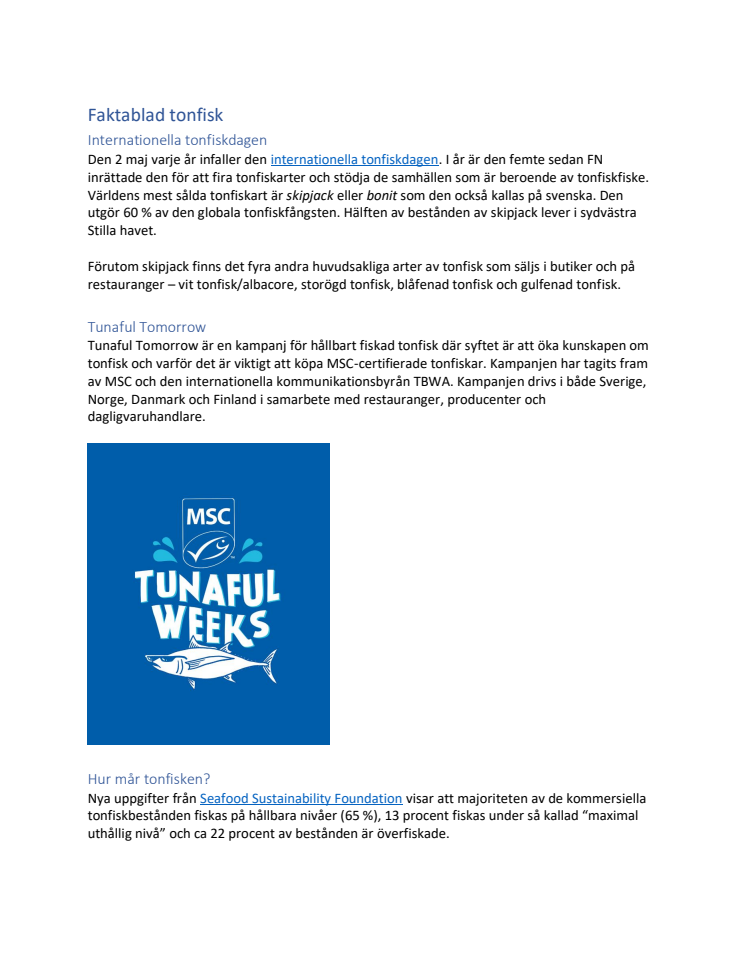 Läs mer om tonfisken vi konsumerar, msc-cerfierad tonfisk och vilka arter som är de vanligaste i det kommersiella fisket