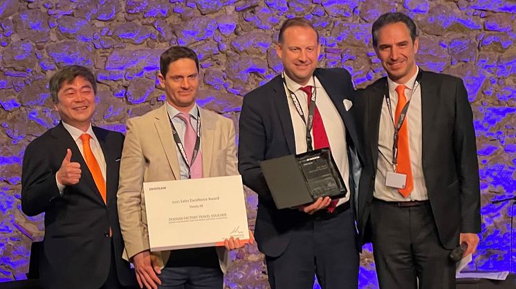 -Jag är så stolt över vad vi har uppnått och vill passa på att tacka teamet på Maskinia, kunder och våra leverantörer! Tillsammans har vi jobbat mot detta gemensamma mål och har under åren byggt en organisation i världsklass! Denna utmärkelse är ett bevis på att vi gjort saker rätt, säger Doosans försäljningschef Carl-Johan Sunnerfjord.
