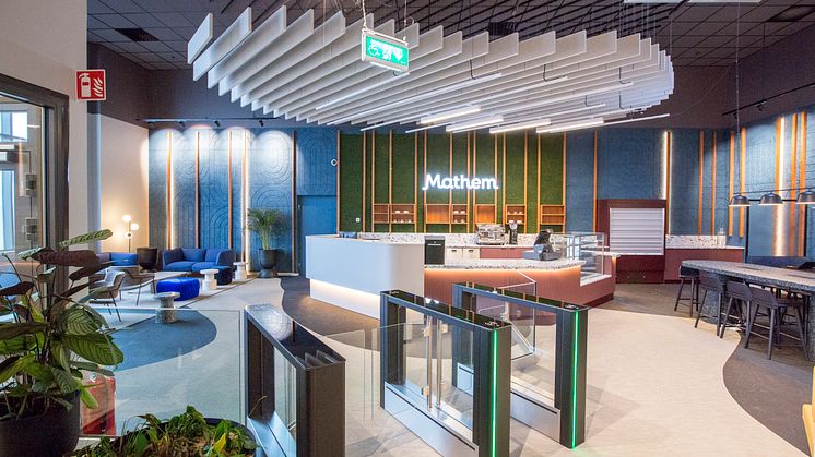 Mathem har även lagt stor vikt vid att skapa en trivsam arbetsplats för alla medarbetare. Millimeter Arkitekter har inrett anläggningen.