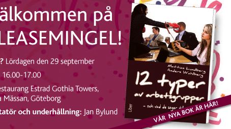 Kom och fira med oss! Nu släpper vi vår nya bok "12 typer av arbetsgrupper och vad de säger till psykologen". Boken är den 5:e och sista i "typer"-serien och detta måste uppmärksammas! Vi hoppas att du vill vara med och fira detta med oss – och vilken plats är inte bättre än Bok & Biblioteksmässan i Göteborg?