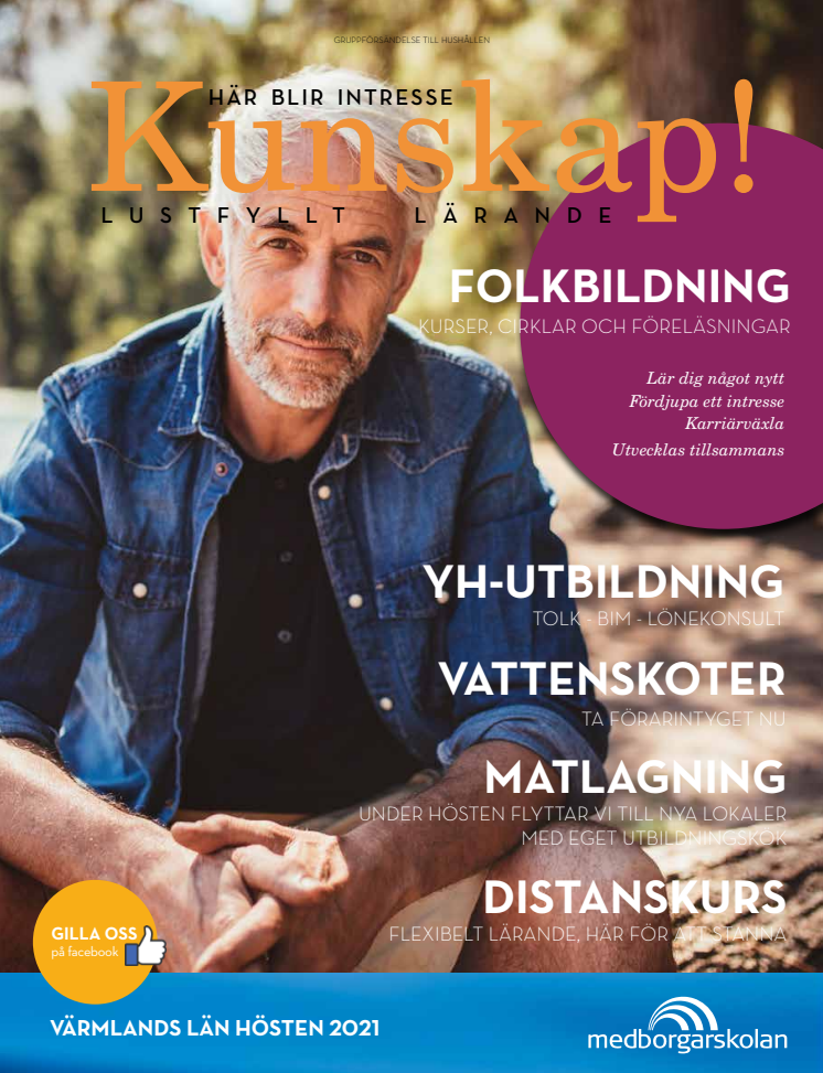 Medborgarskolans program för hösten 2021. Vi sätter kunskap och bildning i första rummet och anpassar vår verksamhet efter de förutsättningar som ges. Det lustfyllda i lärandet kan ske på många sätt, digitalt, online, utomhus eller i små grupper, när så väl det är möjligt. Länge leve lärandet och vår inneboende nyfikenhet.