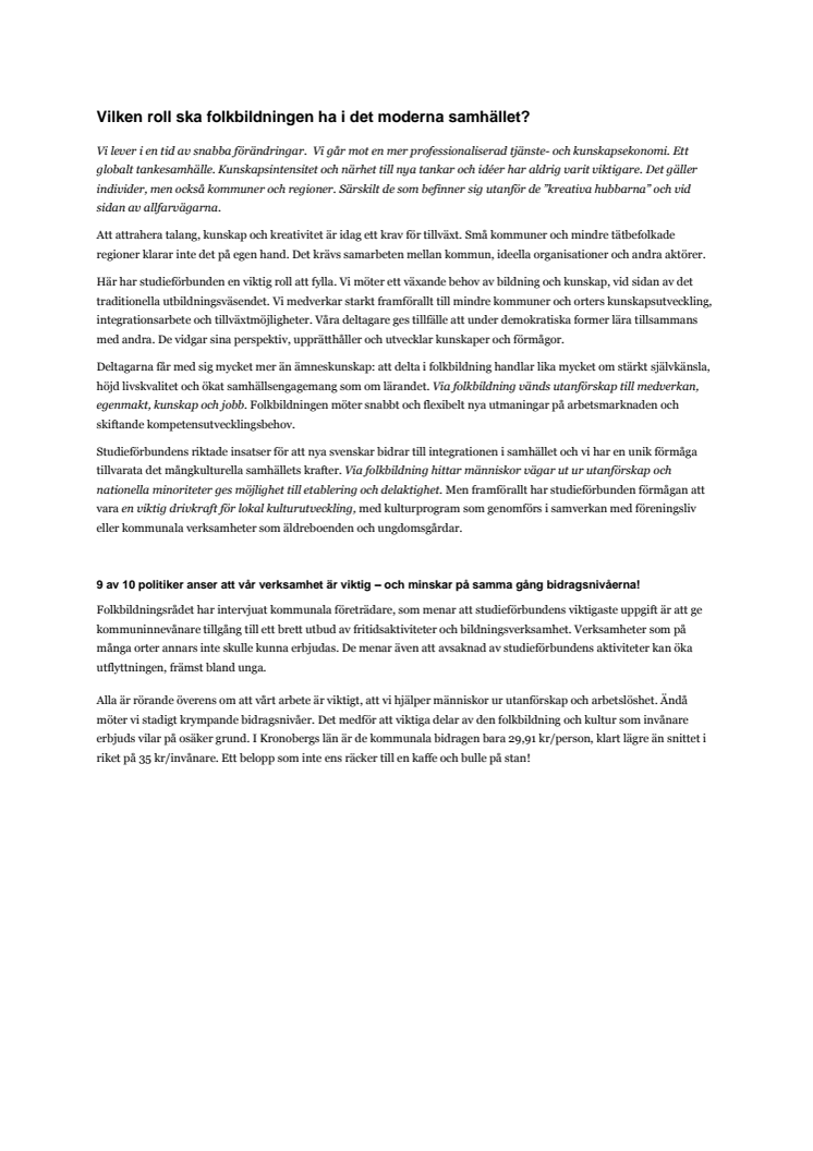 Vilken roll ska folkbildningen ha i det moderna samhället? (Kronoberg)