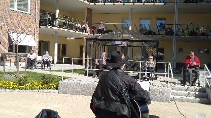 För någon vecka sedan underhöll Tarmo de boende på Karlslundsgården med en konsert på gården nedanför balkongerna. På fredag kl 15:00 är det dags igen, om vädret tillåter. Vi du/ni vara med på Tarmos spelning på äldreboendet? Kontakta Anna, se nedan!