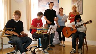 Under två perioder om vardera tre veckor ska 24 musikintresserade ungdomar uppträda med sång och musik för sjuka och gamla i Skellefteå. De första tolv har precis börjat och blivit indelade i grupper om sex personer.
