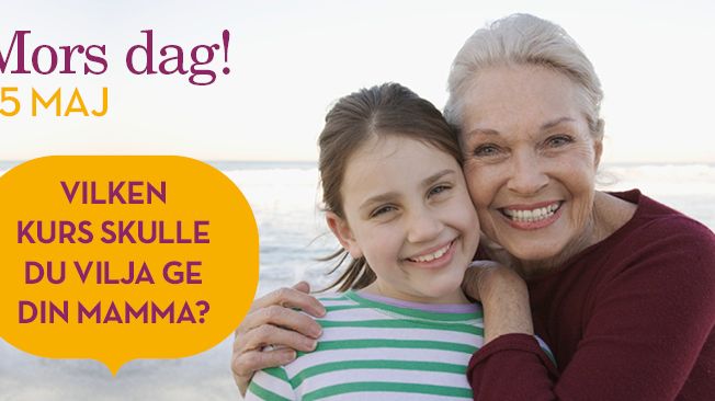 25 maj är det återigen dags att fira Mors dag. I år tycker vi att du skall uppvakta henne med en kurs eller föreläsning hos oss på Medborgarskolan. I vårt stora utbud finns det verkligen något för alla. Vad sägs t ex om en språkkurs inför utlandsresan? Eller en kreativ hantverkskurs? Kanske är hon mer intresserad av yoga? Eller varför inte en inspirerande matlagningskurs? Behöver hon kanske lite hjälp att lära sig hur hennes digitalkamera eller iPad/iPhone fungerar? Eller passar en djupdykning i familjens historia via någon av våra populära kurser i släktforskning henne bättre?