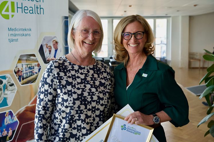 Patientens pris 2025 - Vinnare Barbro Cagner, Njord Medtech och programdirektär Lena Strömberg.
