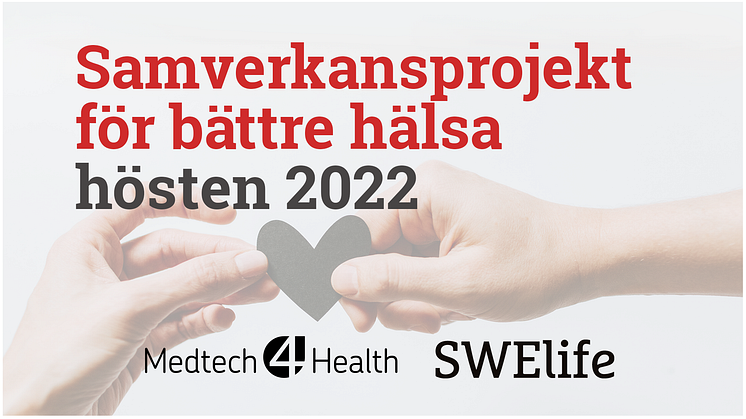 Samverkansprojekt för bättre hälsa hösten 2022 är en gemensam utlysning för Swelife och Medtech4Health. Projekt med stor innovationspotential som bidrar till förbättrad prevention, diagnos, monitorering eller behandling är välkomna att söka.