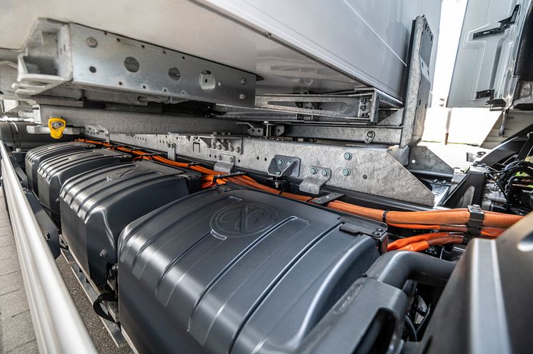 eActros kan fås med tre eller fyra batteripaket på tillsammans upp till 420 kWh