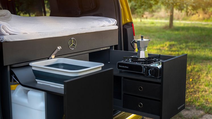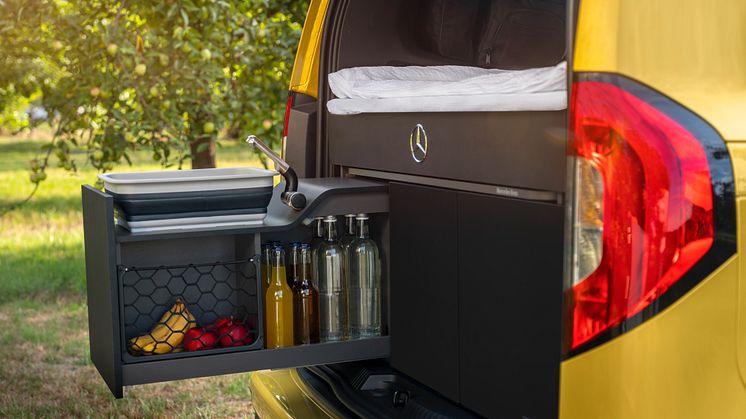 Så kallade micro-campers blir alltmer populära och i synnerhet bilar som kan växla uppgift mellan att vara vardagsbil och husbil. Med en ny Marco Polo-modul går det snabbt att göra om Mercedes-Benz nya kompakta T-Klass till campingbil med plats för två att sova, äta och laga mat.