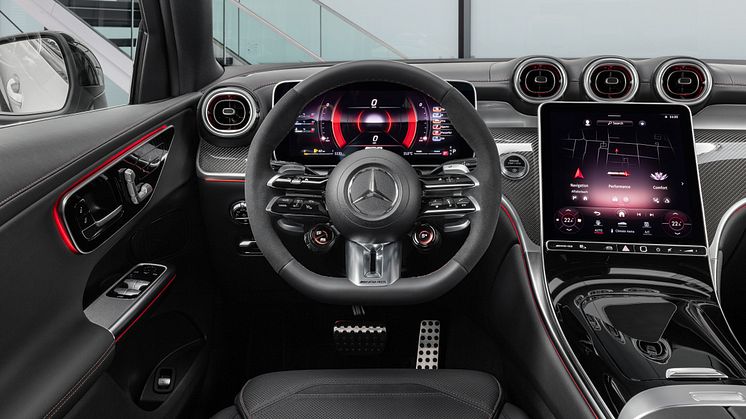 GLC 63 S E PERFORMANCE Coupé är toppmodellen och den första suv coupén från AMG med den helt nya hybriddrivlinan. En rak 2.0-liters fyra på 476 hk (350 kW) kombineras med en elmotor på 204 hk (150 kW). Tack vare elmotorn får bilen både ytterst snabb respons och en bra viktfördelning. Systemeffekten landar på 680 hk (500 kW) och det totala vridmomentet är 1020 Nm.