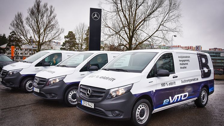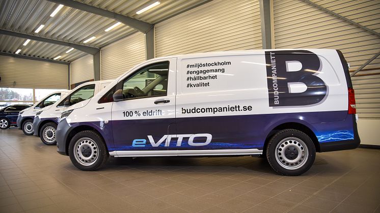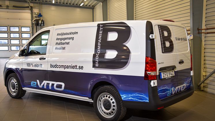 Budcompaniett blir den första kund som tar den helt nya eldrivna transportbilen Mercedes-Benz eVito i bruk på svensk mark. Långsiktiga miljömässiga vinster lockar. Bilarna levereras av Upplands Motor, som är återförsäljare för Mercedes-Benz.