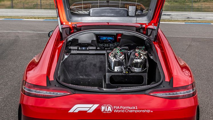 Safety Car är den bil som tar täten och håller tävlingsbilarna bakom sig om en situation påkallar det. I den nya versionen är bilens signalsystem till förarna integrerat i bilens spoiler och i fronten. Den nya modellen är en Mercedes-AMG GT Black Series – i grunden samma bil som går att köpa ”över disk” med en motor på 730 hästkrafter och ett chassi som är byggt för att köras på racerbanor. 0–100 går på 3,2 sekunder och toppfarten är 325 km/tim.