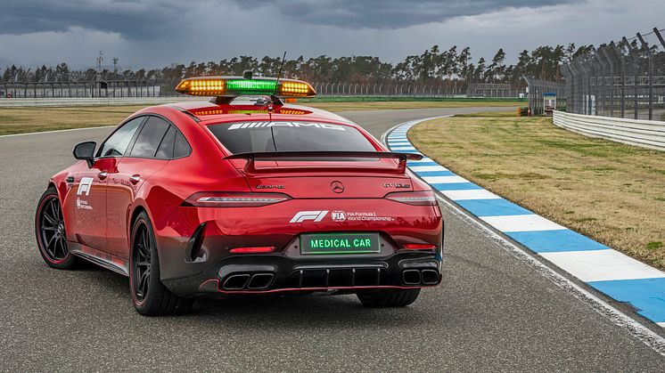 Den andra bilen benämnes Medical Car och är en 4-dörrars Mercedes-AMG GT 63 S 4MATIC+ på 639 hästkrafter (0-100 3,2 sekunder, toppfart 315 km/tim). Bilen är bemannad av upp till tre läkare varav en är Formel 1’s egen räddningskoordinator Dr Ian Roberts. I baksätet sitter alltid en eller två lokala läkare från en specialistklinik i närheten. Bilen följer fältet under det första varvet och är därefter aktionsberedd i depån.