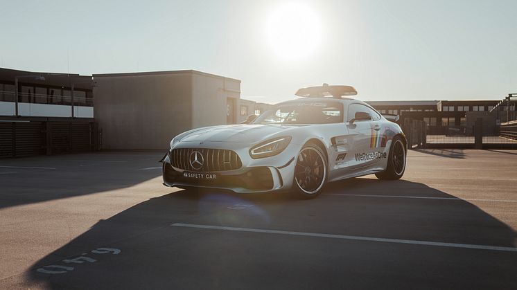 I 25 år har det varit en Mercedes-Benz Safety Car som tagit täten när en olycka inträffat eller det blir dåligt väder i Formel 1. Årets försenade VM-serie som har premiär i Österrike på söndag är inget undantag och liksom förra året är det en Mercedes AMG GT R som har rollen. Men i år med en helt ny design med regnbågsdekor och texten ”WeRaceAsOne”.