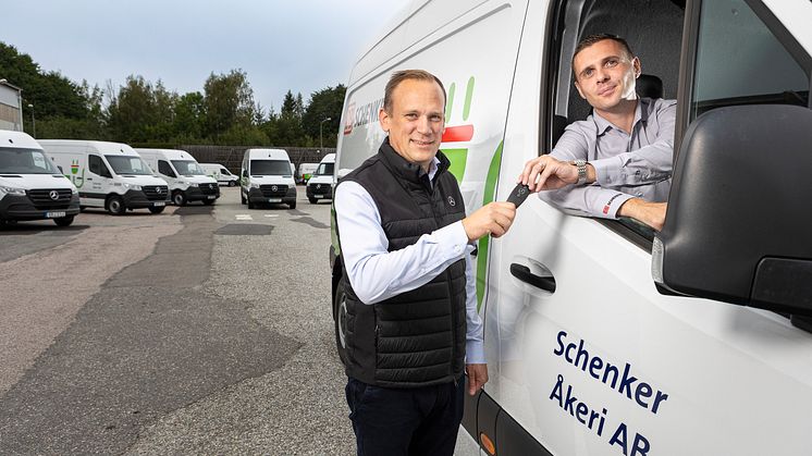 Schenker Åkeri satsar hårt på elektrifiering. När det gäller lätta lastbilar eller paketbilar är målet att alla de ca 150 fordon man har, ska vara eldrivna inom några år. Med en första leverans av 32 eldrivna eSprinter från Mercedes-Benz har företaget i ett slag elektrifierat 20 % av vagnparken.
