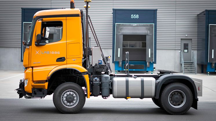 Med sig på resan har man en självkörande Mercedes-Benz Arocs. Bilen kommer att köras (eller åkas) på ett inhägnat område på ELMIA Lastbil under hela mässan.