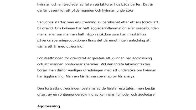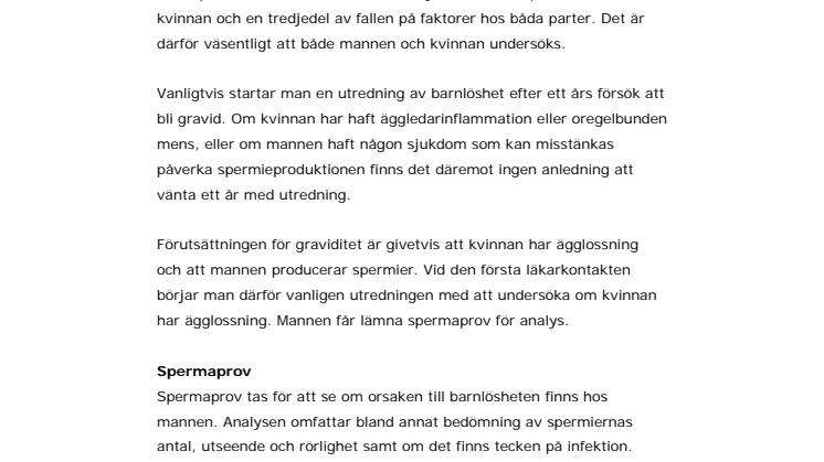 Mer information om ofrivillig barnlöshet och behandling finns på: www.fertility.se