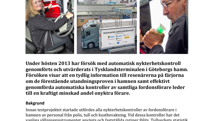 De sex alkobomsstationerna i frihamnen kommer att fånga upp 20-30 lastbilar varje dag när de åker av färjorna. 200-300 personbilar kommer också att kontrolleras. Försöket i Göteborg visar att trafikflödet inte bromsas upp av kontrollerna.