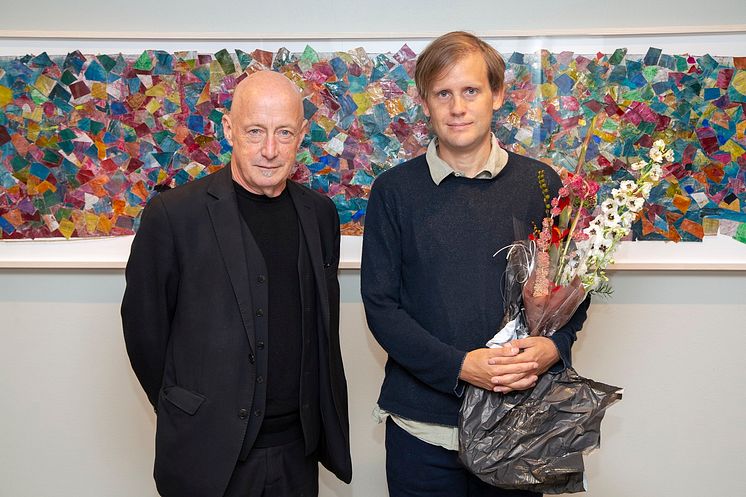 Konstnären Hans Andersson berättade kort om konsten han skapat på uppdrag av Micasa Fastigheter och hur det kreativa arbetet går till och att det har varit positivt att få göra ny konst för de boende i huset. Hans bildkonst invigdes på plats.