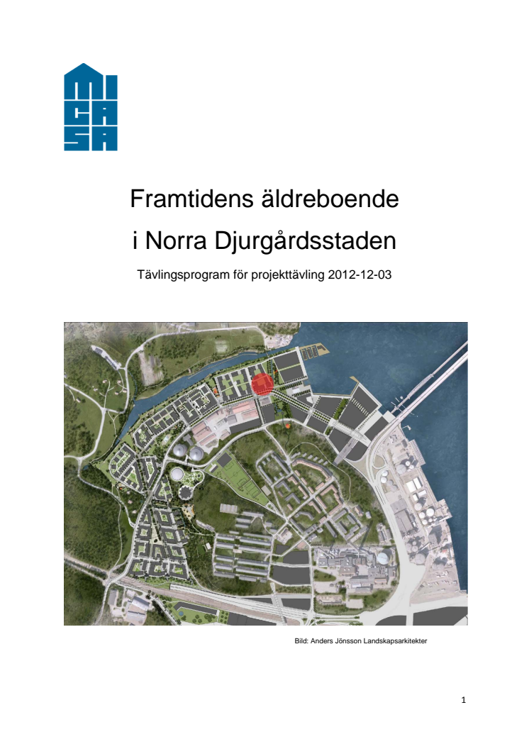 Tävlingen arrangeras av Micasa Fastigheter i samarbete med Östermalms stadsdelsförvaltning och Sveriges Arkitekter. Projekttävlingen gäller bostäder i Kv Hjorthagen 1:3 inom delområde Brofästet i Norra Djurgårdsstaden. Dels planeras ett vård- och omsorgsboende, dels ett trygghetsboende. Cirka 150 lägenheter omfattas av arkitekttävlingen. Byggstart beräknas till 2016 och inflyttning 2018.
