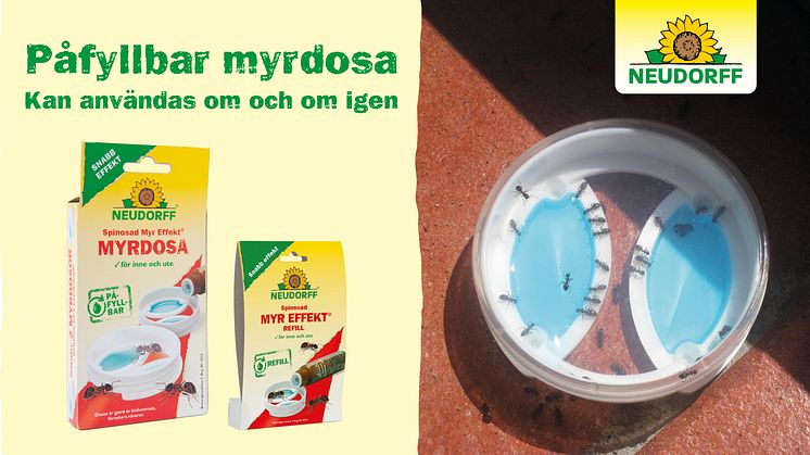 Myror kan vara en stor utmaning både inomhus och utomhus, och det krävs ofta kontinuerlig behandling för att hålla dem i schack. Neudorffs påfyllbara myrdosor erbjuder en enkel och effektiv lösning där du kan använda samma dosor om och om igen, detta resulterar i mindre avfall eftersom du inte behöver kasta och köpa nya dosor varje gång. Du kan enkelt se när det är dags att fylla på dem, vilket gör det både kostnadseffektivt och med ett lockmedel som räcker längre, förklarar Erika Görjevik, Produktchef på Miljöcenter.