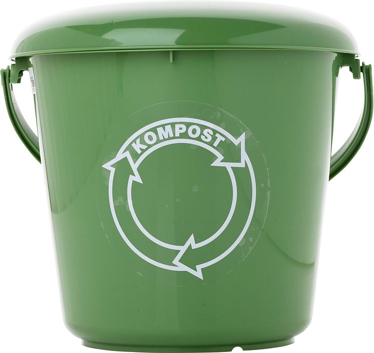 Rund hink med tätslutande lock för organiskt avfall som till exempel matrester eller kaffesump.