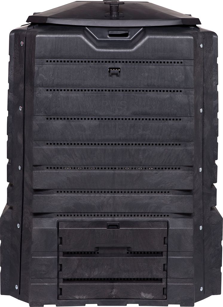 Med trädgårdskompostens design blir luftcirkulationen den bästa och därmed gynnas processen som gör avfallet till värdefull och näringsrik mylla till trädgården. Det låsbara och delade locket ger ett effektivt skydd mot väder och vind.