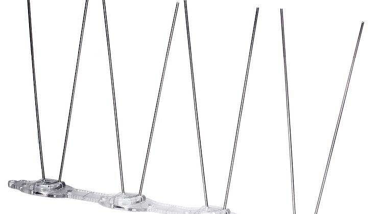Spiky Fågelpiggar – monteras enkelt på tak, plank och andra ställen där fåglarna gärna sätter sig för att vila och därmed smutsa ner. Bygg ihop sektioner om 20 cm till 2 resp 5 meter färdig längd.