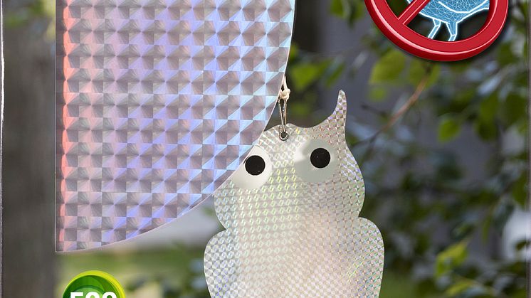 Shiny Owl – 2-pack reflexer i form av en uggla, för avskräckning av fåglar. Häng i träd eller buskage.