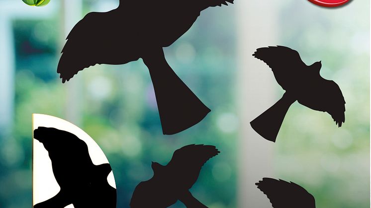 Shadow Fågelskydd – självhäftande siluetter i plast, föreställande en sparvhök. Klistras på fönster för att småfåglarna inte ska flyga mot glaset.