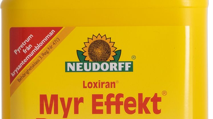 För bekämpning utomhus rekommenderas Myr Effekt Pulver eller Myr Effekt Spray. Myrorna bekämpas med pyretrum som finns naturligt i krysantemumblomman och dödar myrorna genom direktkontakt. Myr Effekt Pulver strös ut eller blandas med vatten för utvattning.