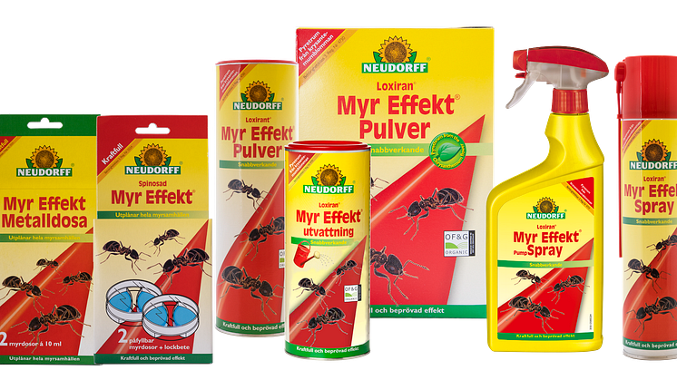 Myr Effekt är ett komplett system för effektiv bekämpning av myror. Välj det som passar just dig och dina behov bäst; dosor, spray eller pulver. Ute eller inne.