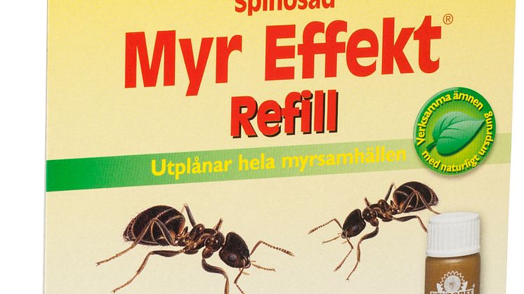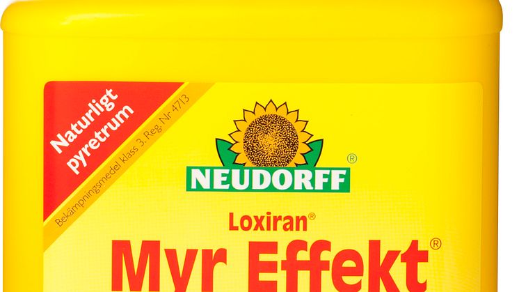 I Neudorffs kompletta serie Myr Effekt finns bekämpning för både inom- och utomhusanvändning; Myr Effekt Metalldosa är en praktisk, färdigbetad metalldosa för effektiv och långtidsverkande bekämpning inomhus, på terrasser eller balkonger. Boets arbetsmyror äter av betet och tack vare den fördröjda effekten, tar de betet med sig till boet och matar övriga medlemmar i kolonin. Den helgjutna dosan är ett bra val för hushåll med barn och husdjur, samtidigt som betet inte rinner ut om någon stöter till dosan.
