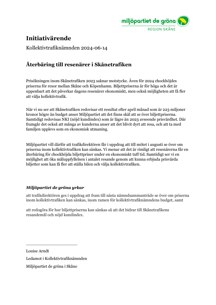 13. Initiativärende (MP) 240614 - Återbäring till resenärer i Skånetrafiken.pdf