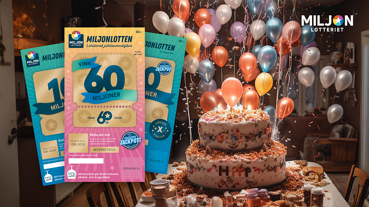 I år har Miljonlotteriet levererat drömvinster till svenska folket i 60 år och för att fira detta jubileum lanseras en lott med Sveriges största skrapvinst någonsin – 60 miljoner. Men inte nog med det, hela kommande år kommer att vara ett långt pärlband av firanden som ska sätta guldkant på svenskarnas vardag.
