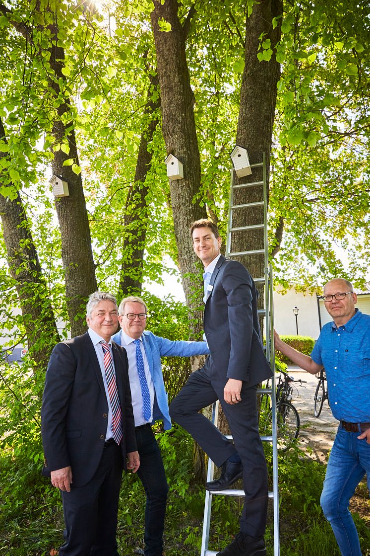På bilden syns Anders Teljebäck, kommunalråd Västerås stad, Anders Nordlander, VD Mimer, Anders Rastin, Bygg och Projektchef Mimer och Mats Ericsson, Projektchef Tuna Entreprenad