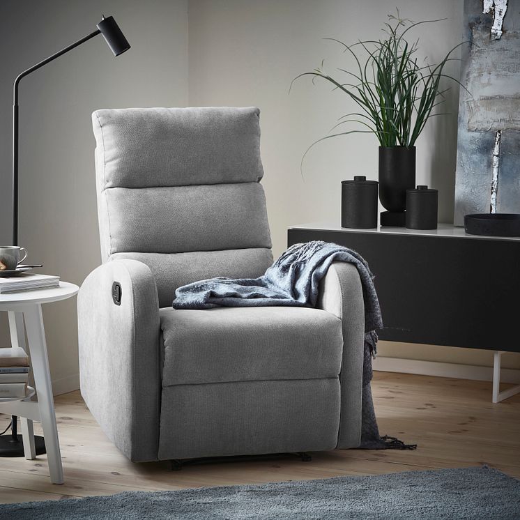 NYHET Reclinerfåtölj Alfred i tyg Fyn light eller dark grey, B 73, D 93, H 106 cm 3.495·