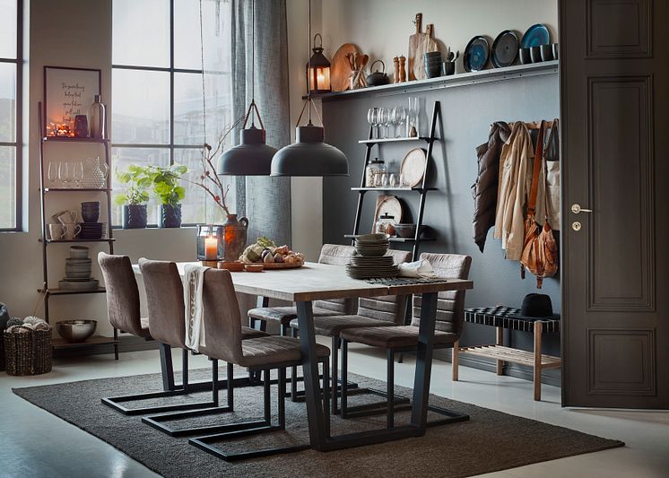 7.995· Stol Chatham i grått microfibertyg med underrede i svartlackerad metall 899· Paketpris 12.995· (13.389·)
