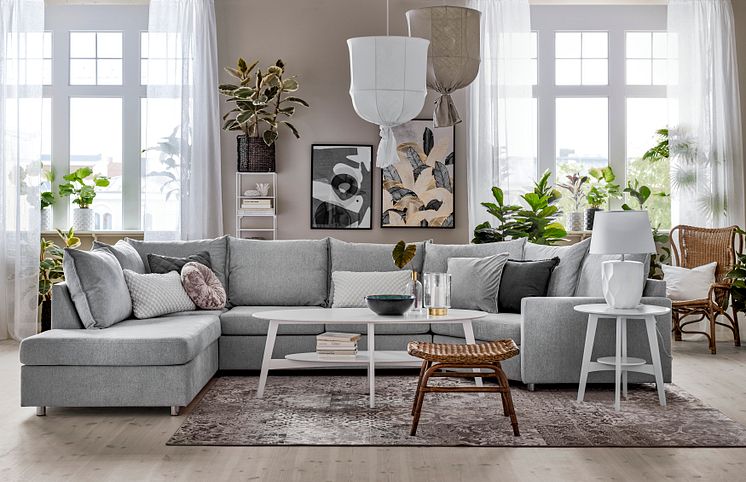 naturrotting, B 75, D 85, H 97 cm 2.995· Pall Fidji, L 56, B 51, H 43 cm 995· NYHET Soffbord Flora i vitlackerad massiv björk, Ø 55, H 55 cm 1.295·, L 140, B 70, H 50 cm 2.495·
