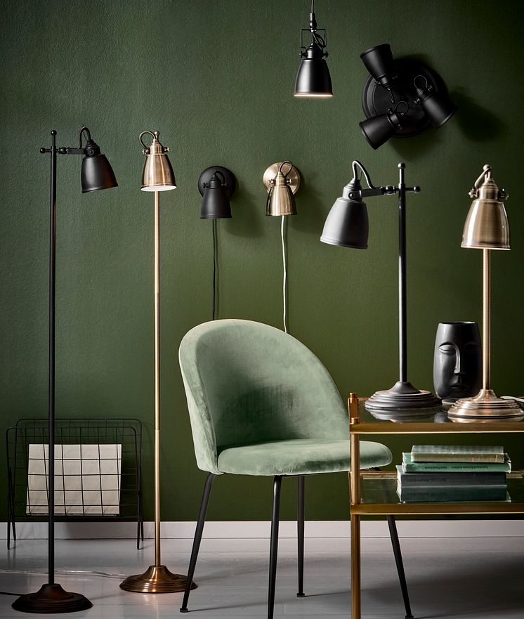 NYHET Fönsterlampa, Ø 10, H 21,5 cm 199· Golvlampa, H 130 cm 599· Vägglampa, B 12,