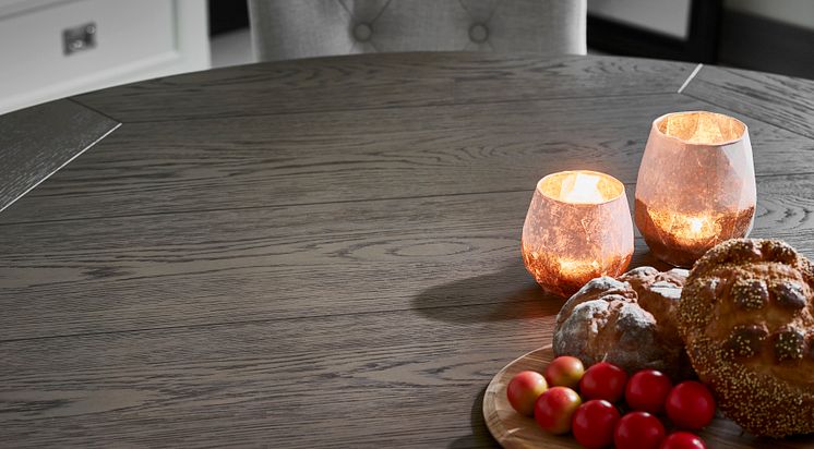 Matbord Marstrand i rökbetsat lackerat ekfaner med vitlackerat kryssunderrede, Ø 150 cm 6.995·