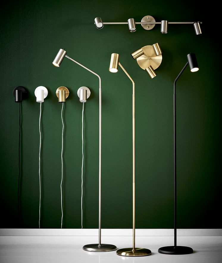Vägglampa, med dimmer, B 10, D 15, H 11,5 cm 299· NYHET Golvlampa, H 138,5 cm 999·