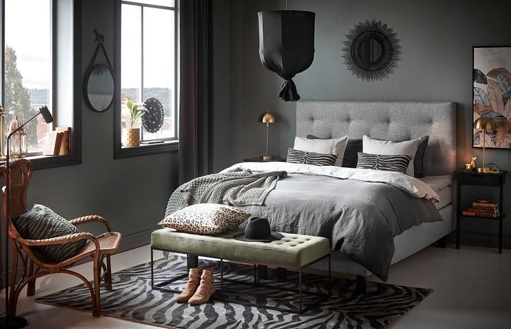 Kontinentalsäng Pisa i tyg Rocco light grey, med bäddmadrass och 15 cm svarta träben, 160x200 cm 5.995· Huvudgavel Pisa pikerad, B 164 cm 1.995· Paketpris 7.295· (7.990·)