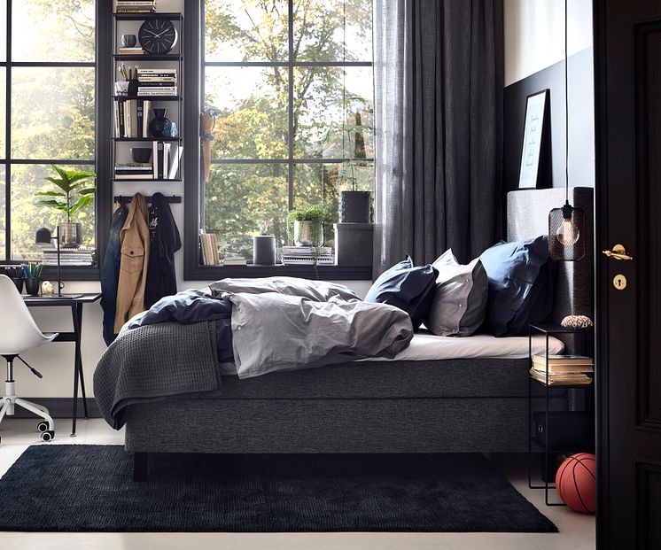 Kontinentalsäng Pisa i tyg Rocco grey, med bäddmadrass och 15 cm svarta träben, 140x200 cm 5.495· Huvudgavel Pisa rak, B 144 cm 1.795· Paketpris 6.695· (7.290·) kontinentalsäng
