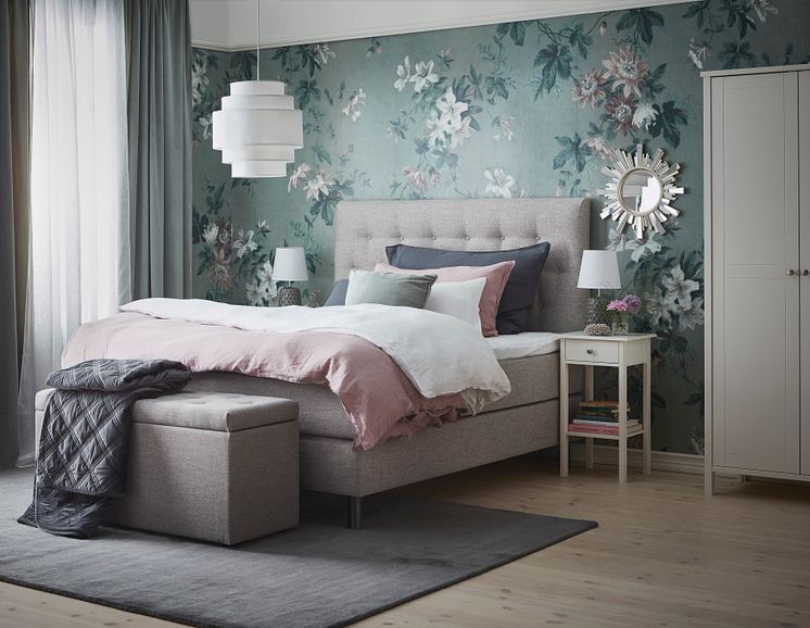 Kontinentalsäng Roma i tyg Roma light grey med bäddmadrass och 15 cm metallben, 160x200 cm cm Specialpris 7.995· (8.995·) Huvudgavel Roma pikerad, B 164 cm 3.295·